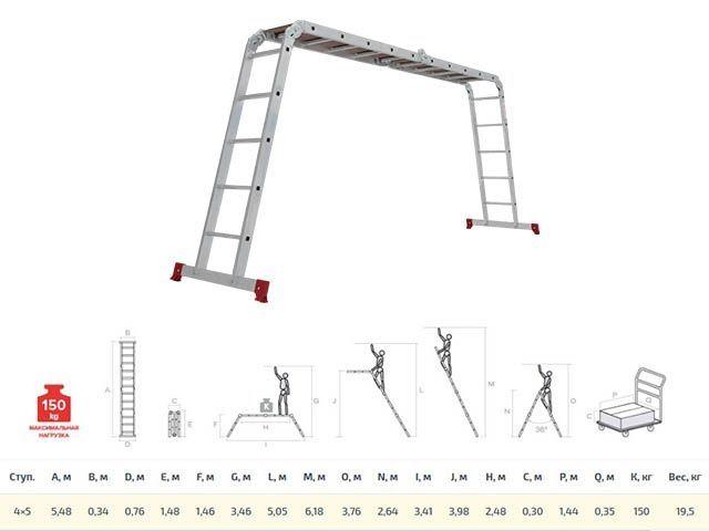 Лестница алюм. многофункц. трансформер 4х5 ступ. с настилом, 19.9кг NV2330 Новая высота
