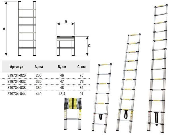 Лестница телескопическая 1-секц. алюм. 320см, 11 ступ. 8,4кг STARTUL (ST9734-032)