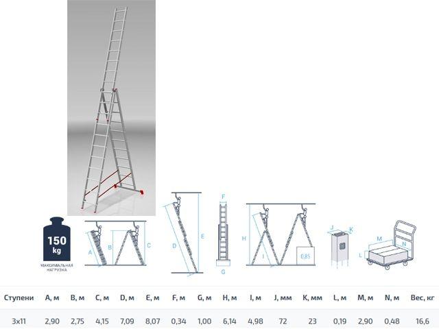 Лестница алюм. 3-х секц. 275/709/290см 3х11 ступ., 16,6кг PRO STARTUL (ST9942-11)