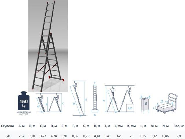 Лестница алюм. 3-х секц. 201/474/214см 3х8 ступ., 9,9кг PRO STARTUL (ST9944-08)